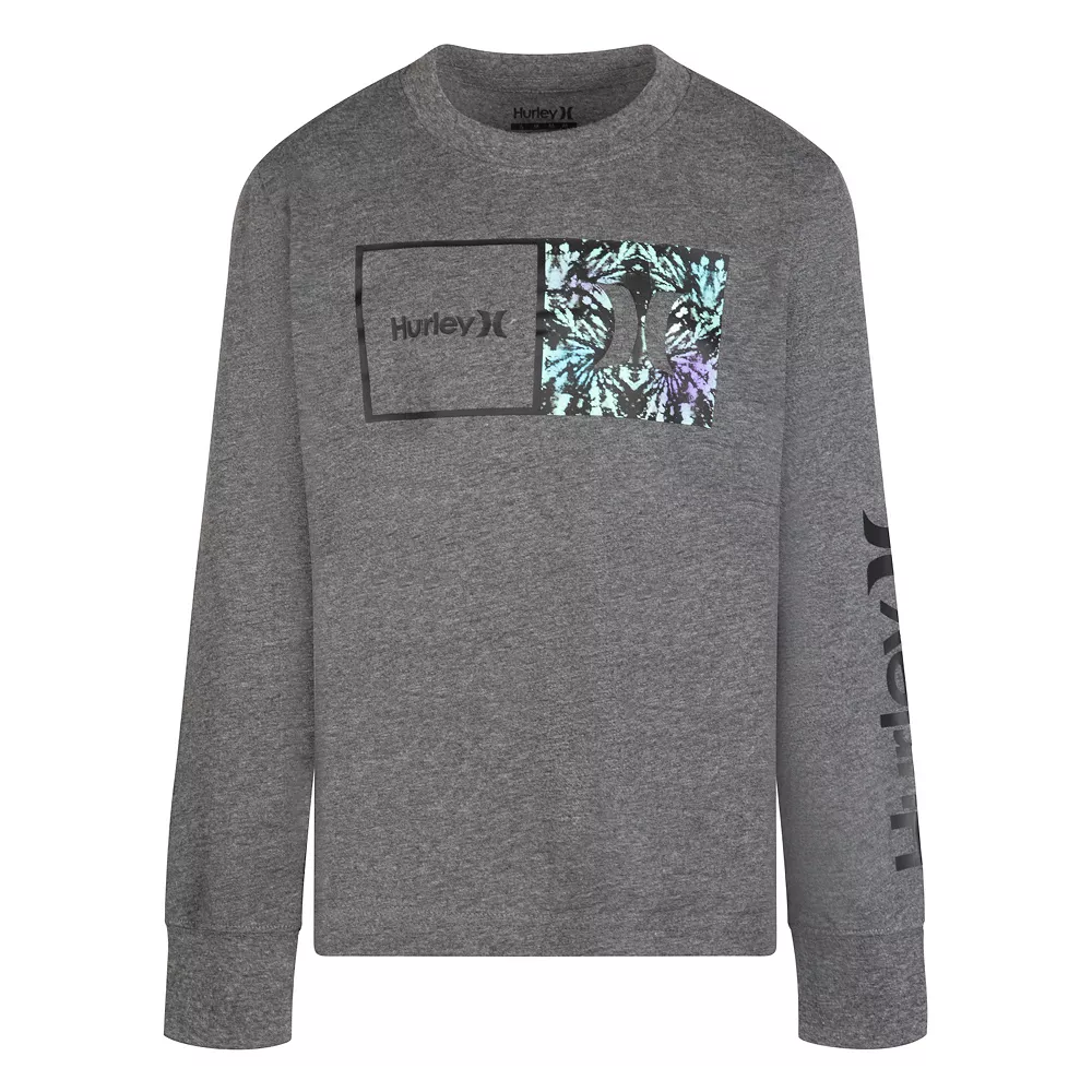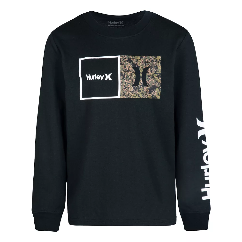 He can kick back California style with this casual Hurley square print long sleeve graphic tee.