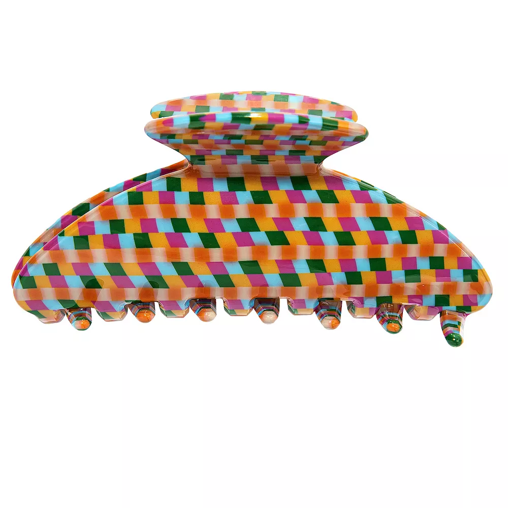 Accessorize in style with this SO® Multi Colored Rounded Checkered Clip.