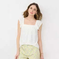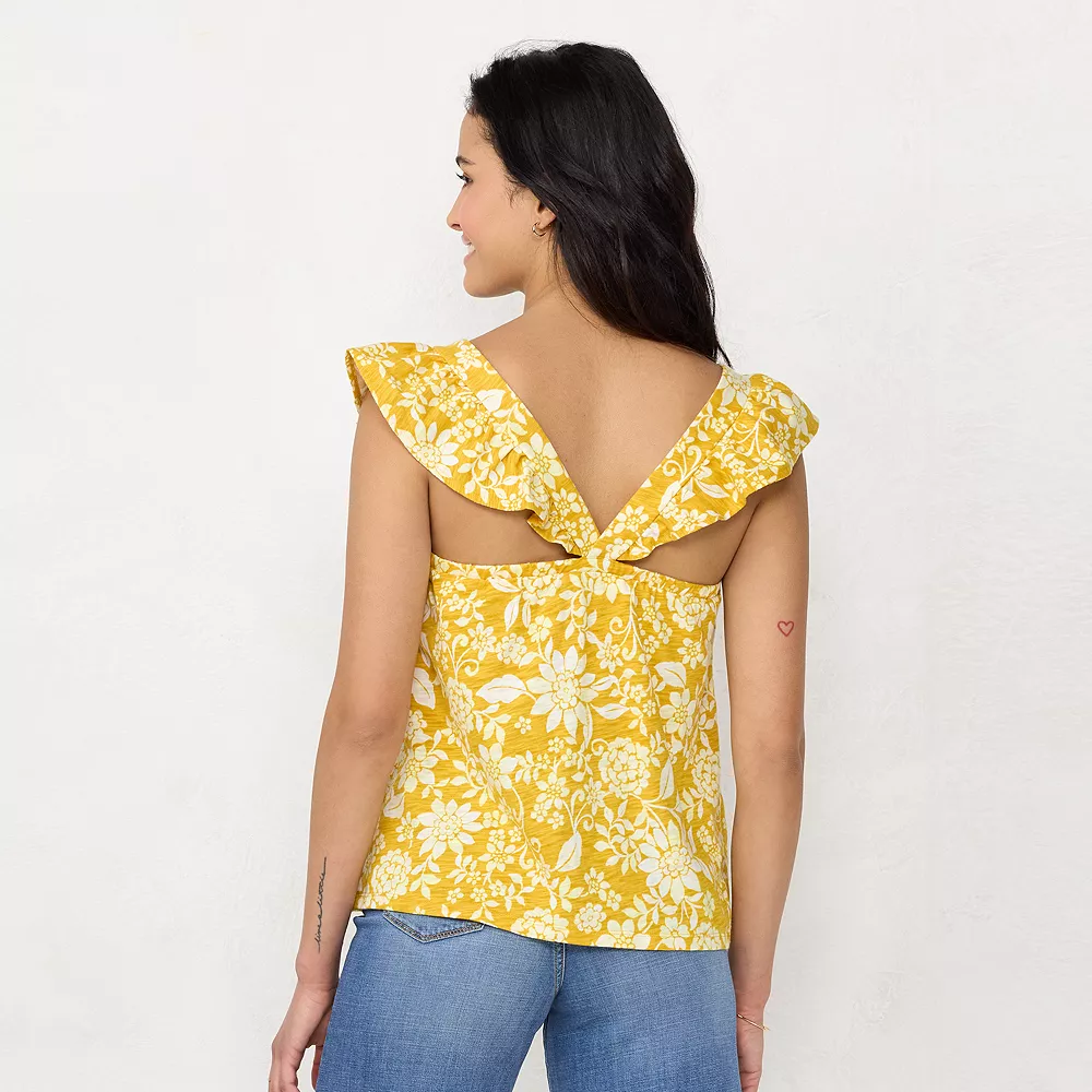 Show off your sweet summer style with this women’s ruffle sleeve cross-back top.